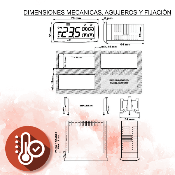 - Instalacion: Dispositivo de incorporar mediante encastre a panel en agujero 71×29 mm
