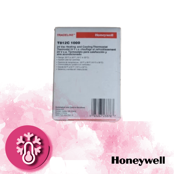 - El termostato Honeywell T812C1000 es un control analógico, mecánico y no programable diseñado para sistemas residenciales de 24V de calefacción y refrigeración (1 etapa de calor/1 etapa de frío). Ofrece una solución robusta y sencilla con selección manual de modo (Cool-Off-Heat) y control de ventilador, ideal para controlar calderas y aire acondicionado.